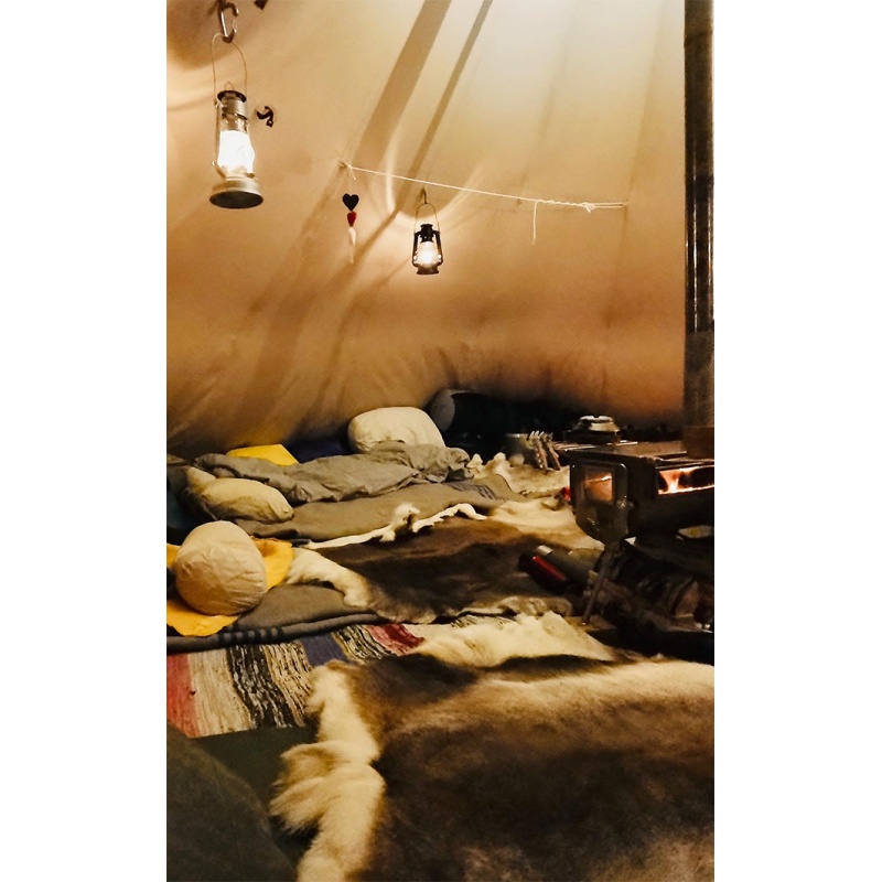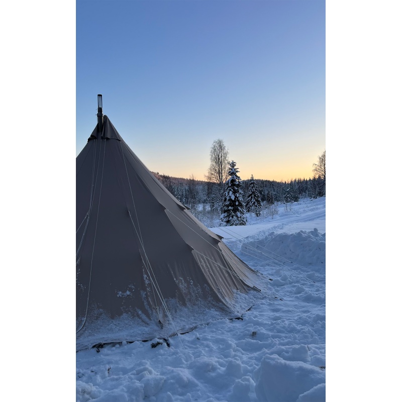 Küttekeha kasutamisel viiakse Tipii telgil puhul korsten telgist välja telgi tipu kaudu.